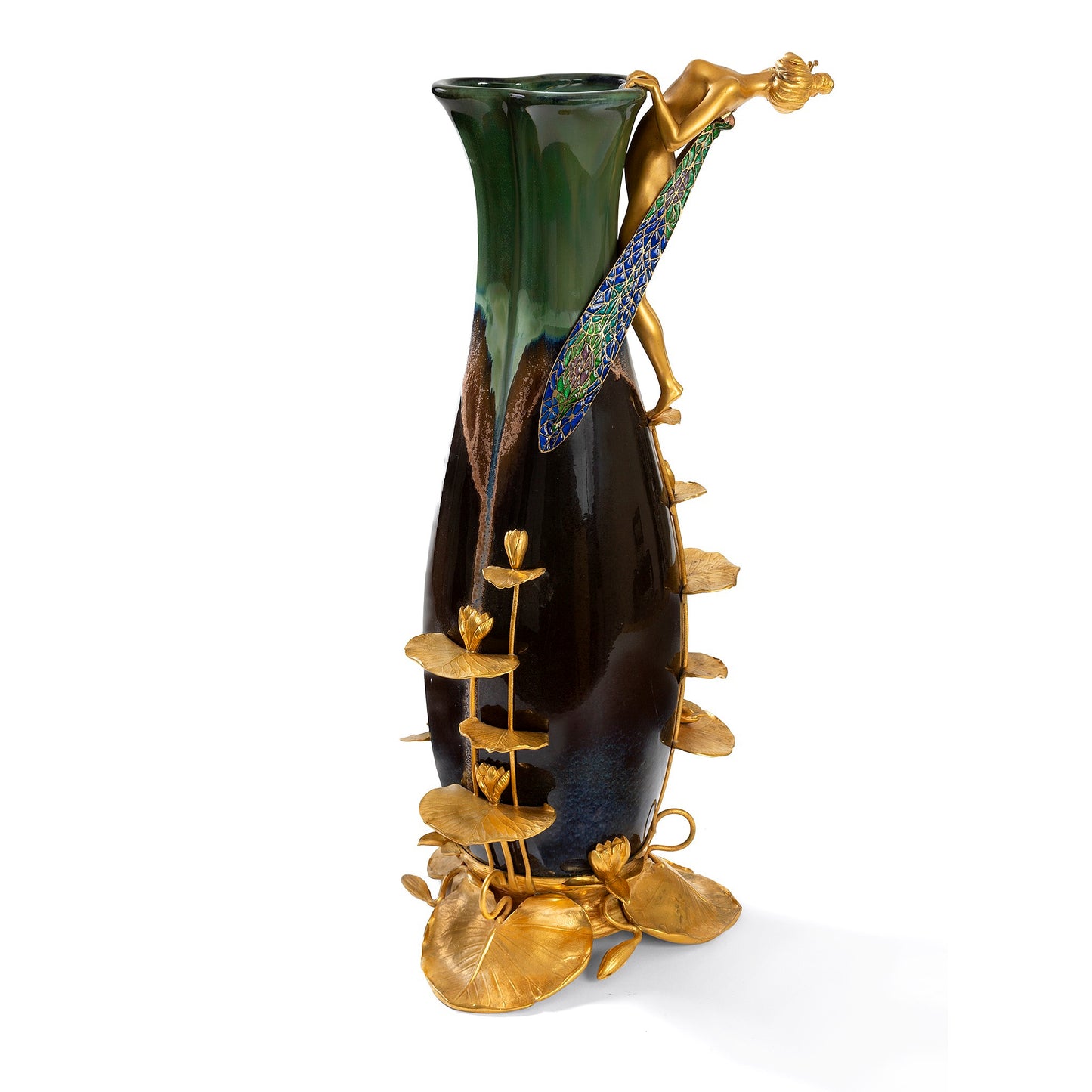 Louis Chalon "Libellule" Enamel, Gilt Bronze, and Ceramic Vase