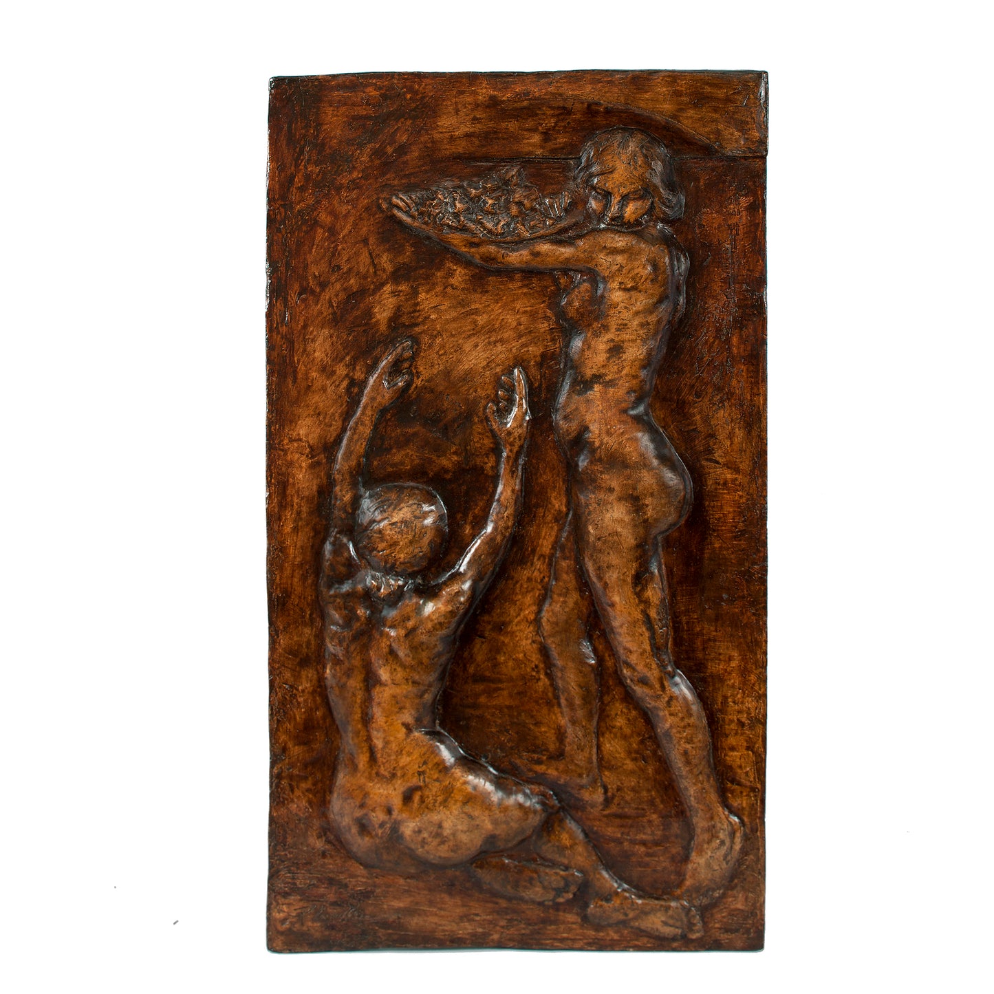 François-Rupert Carabin, perhaps the most brilliant sculptor in wood of the Art Nouveau era, was also an accomplished photographer, medal-maker, and designer of ceramics. Carabin’s work exemplified the Pantheist spirit in Art Nouveau, a movement that emphasized a return to unconventional, realistic depictions of nature, often conveying a sense of awe and fear. His sculpted furniture was often composed of conjoined bodies of animals, often cats, snakes, owls, and other “creatures of the night,” as well as female nudes, often clinging to the objects in support. His work was based not on utility, but was a celebration of natural bodily forms, and edged towards the dangerous and threatening psyche of the spirit. Carabin gained fame in 1890 when Gustave Geffroy published an article in Revue des arts décoratifs, highlighting a bookcase by Carabin created in 1889. For Geffroy, Carabin’s bookcase represented a new way of looking at sculpture and furniture, which rejected the traditional definitions and classifications of art. Many examples of Carabin’s works can be found in various museums, including the Musee d’Orsay, the Musée d’Art Moderne de Strasbourg, and the Virginia Museum of Fine Arts.