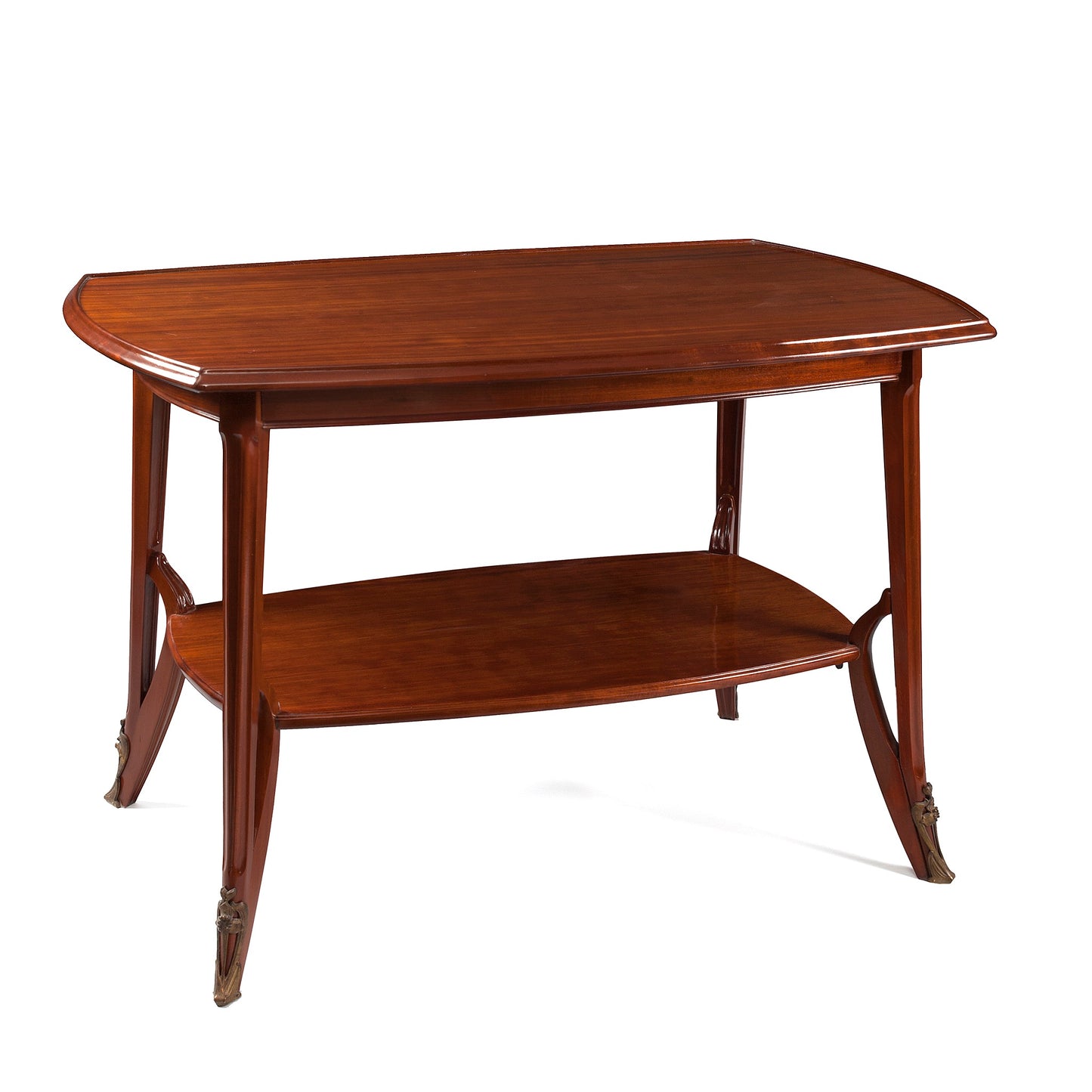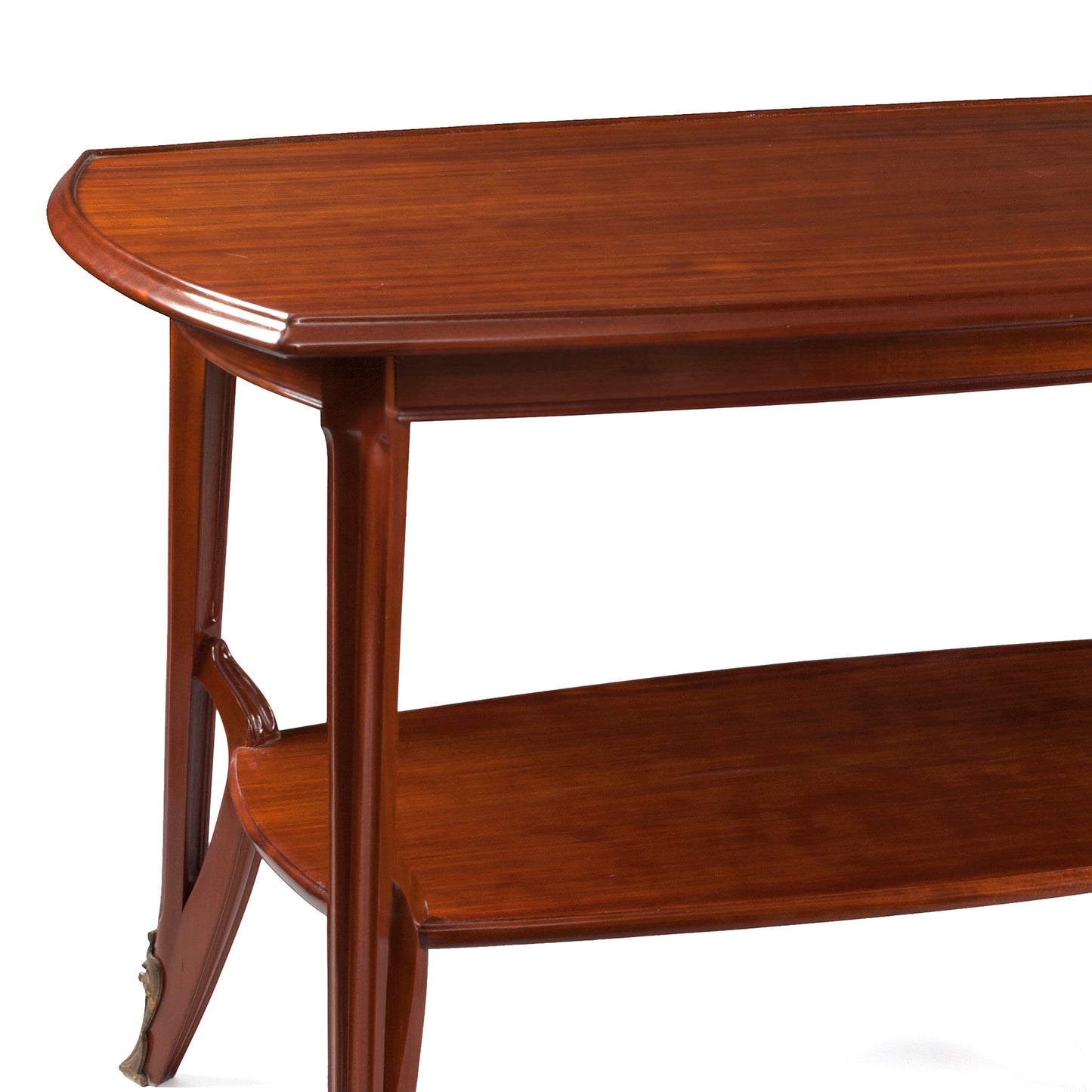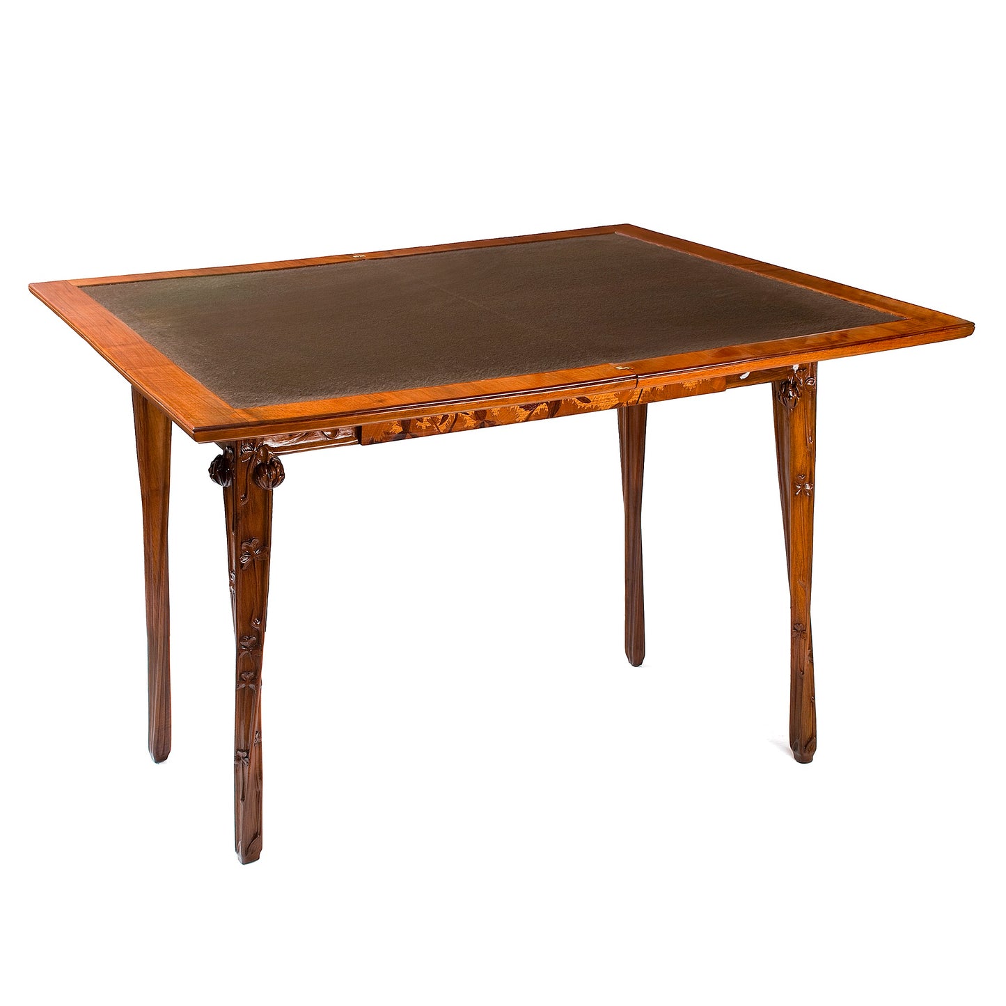Firmly rooted in the craft of woodwork and furniture-making, Louis Majorelle’s furniture subtly recalls the splendors of furniture from the 1700s. Majorelle often ornamented his pieces with gracefully sculpted gilt mounts, while the sinuous natural forms which inspired him suggested the C-scrolls of the Louis XV era. Using a new vocabulary of natural forms and the sumptuous lines of Art Nouveau, Majorelle's furniture merged old and new in a tantalizing way. This combination of exceptional craftsmanship with the new aesthetic was celebrated by the public and critics alike, who saw in Majorelle a cherished link between the grandeur of the eighteenth century and the promise of the modern age. The influence of Émile Gallé inspired him to take his production in new directions in the 1890s, when Majorelle's furniture began to reflect the Art Nouveau designs created by his contemporaries. He continued to experiment with Art Nouveau motifs that were gaining popularity and began working with floral decoration in marquetry, but overall, his furniture still betrayed a Victorian sensibility, though of the highest quality, and in a wide range of wood veneers.