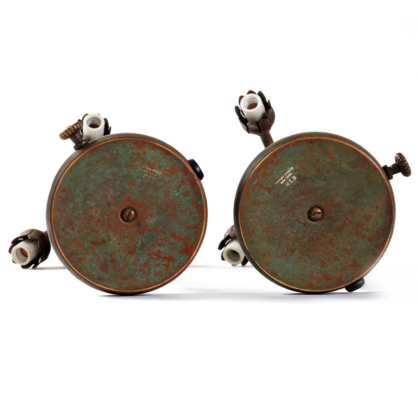 Tiffany Studios New York Pair of "Three-light Lily" Desk lamps