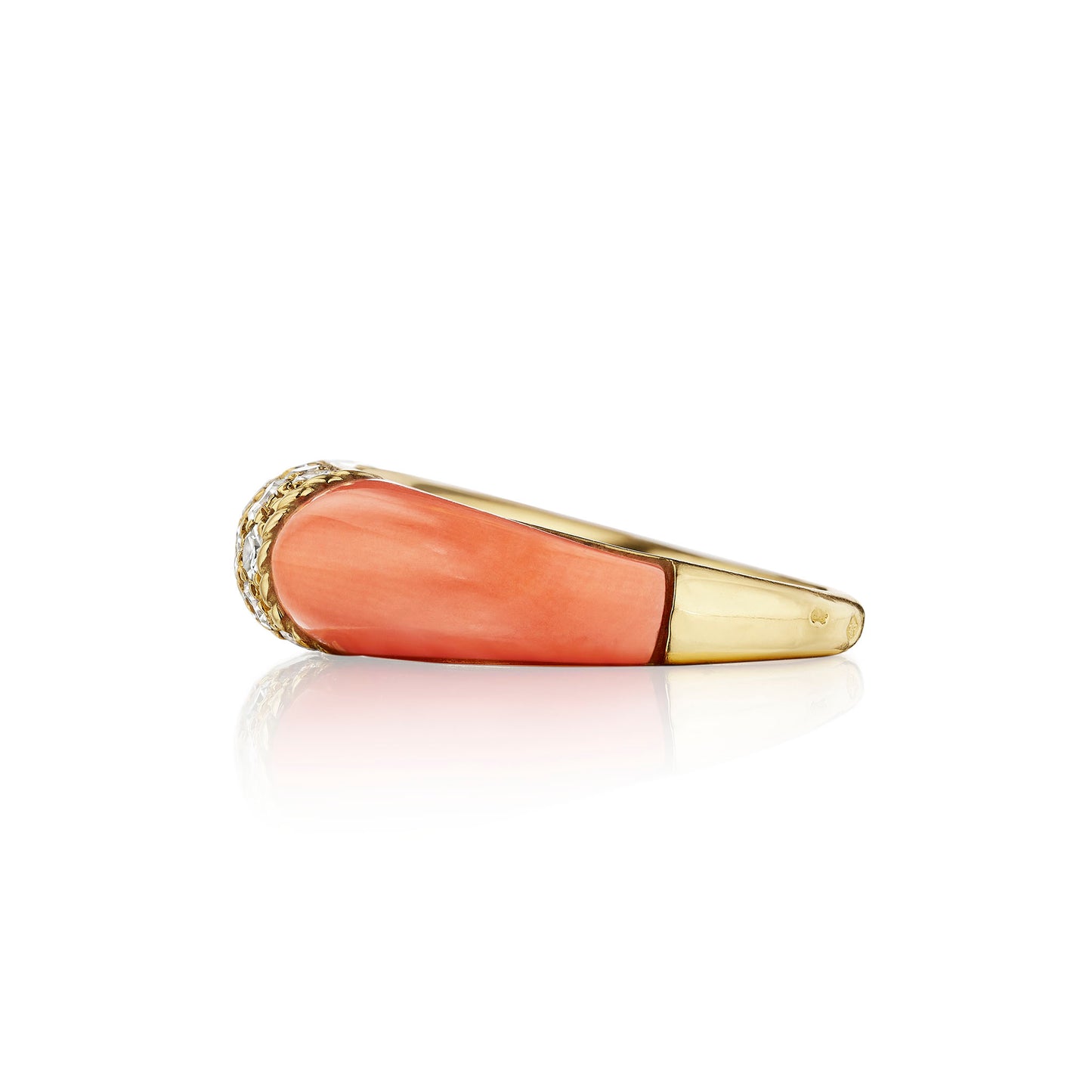 Materials: 18 single-cut diamonds (approximate total weight 0.51 carat); Coral; 18K Gold