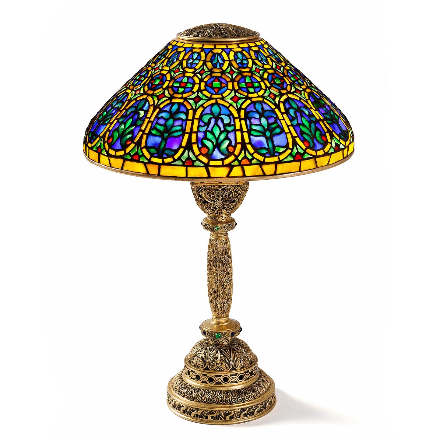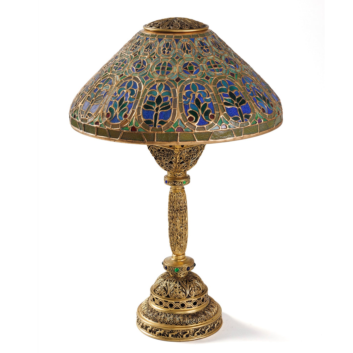 Literature: Similar desk lamp pictured in The Lamps of Tiffany, by Dr. Egon Neustadt, New York: The Fairfield Press, 1970 p.72, plate 104; Similar desk lamp also pictured in Tiffany Lamps and Metalware: An illustrated reference to over 2000 models, by Alastair Duncan, Woodbridge: Suffolk: Antique Collectors' Club, 1988, p. 102, plate 403
